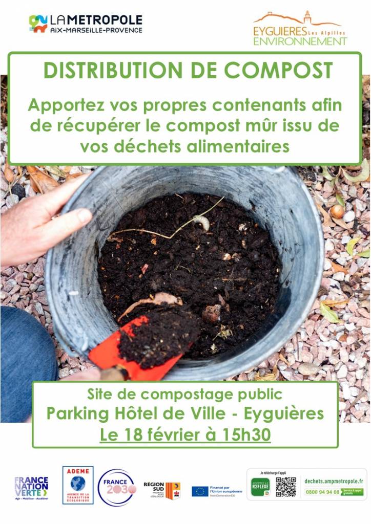 La Métropole Aix-Marseille-Provence, en partenariat avec Eyguières Les Alpilles Environnement, organise une distribution de compost mûr issu de vos déchets alimentaires.