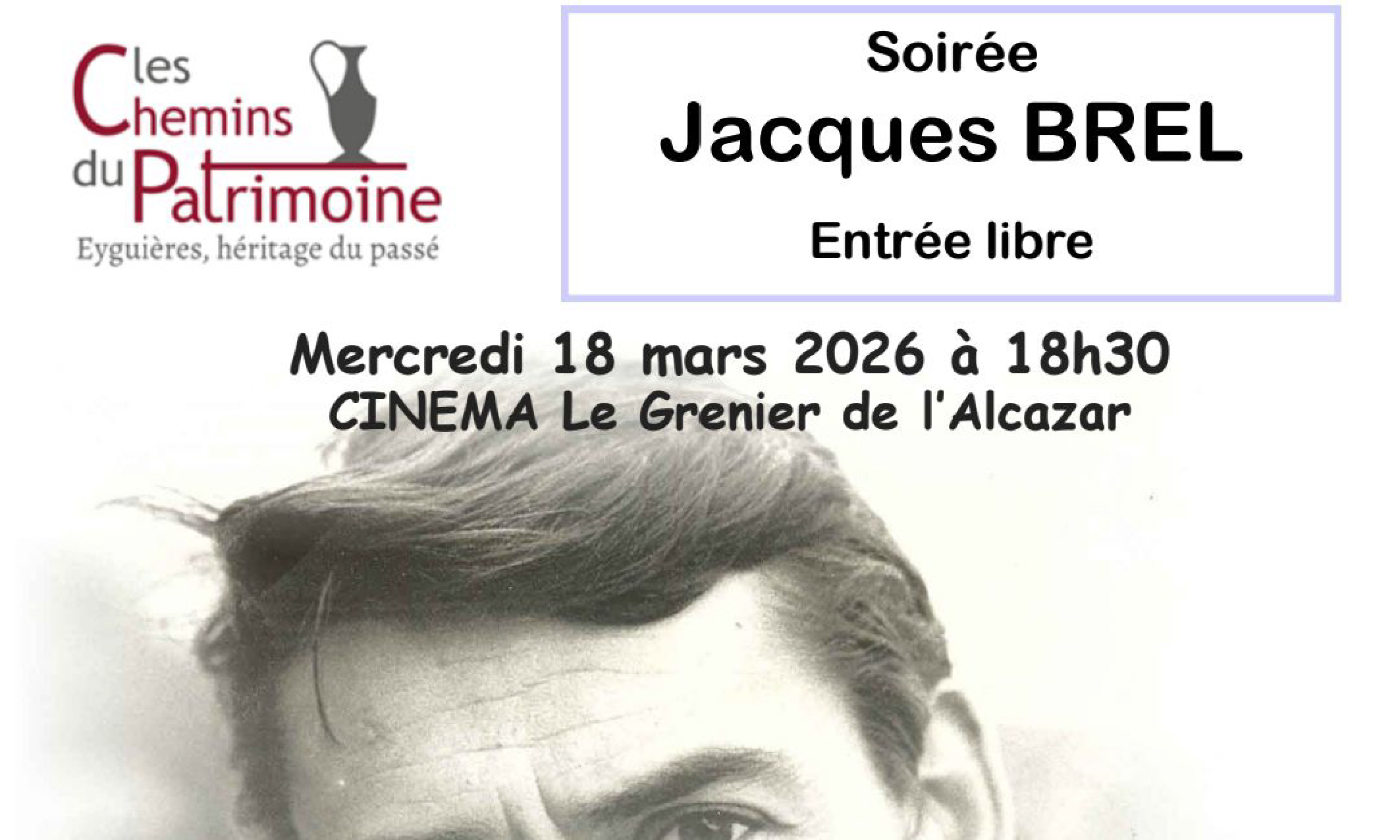 👉 Les Chemins du Patrimoine vous convies à une soirée consacrée à « Jacques Brel », interprétée par Alain Ragazzi.