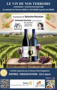 📣 Le Rotary Eyguières Aupiho vous invite à une Conférence – Dégustation dînatoire en présence de Sylvaine Roustan du Domaine ROUSTAN à La Fare les Oliviers.