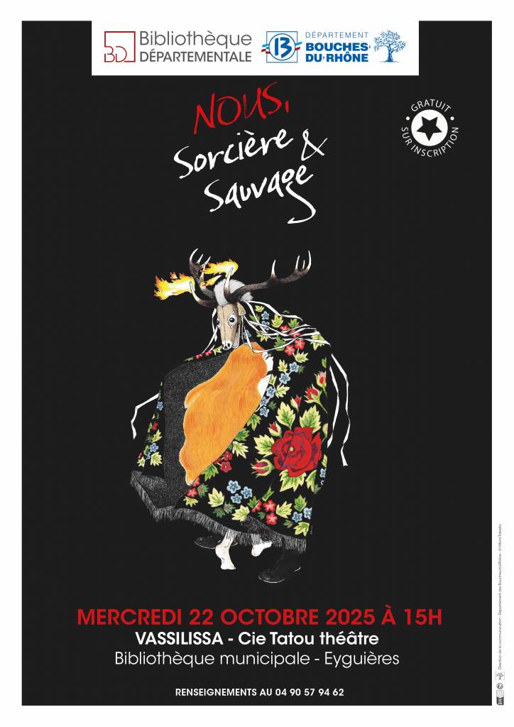 📣 Dans le cadre de la programmation Nous, sorcière & sauvage, la bibliothèque d’Eyguières accueille le spectacle « Vassilissa », proposé par la Compagnie Tatou Théâtre.