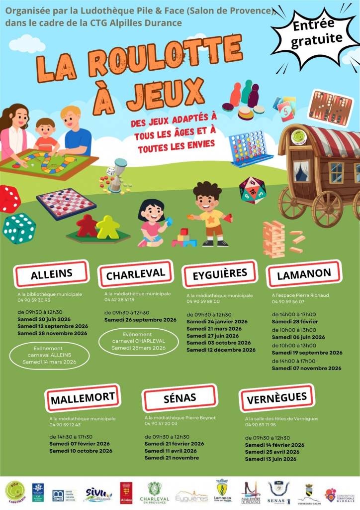 👉 𝐋𝐚 𝐑𝐨𝐮𝐥𝐨𝐭𝐭𝐞 𝐚̀ 𝐣𝐞𝐮𝐱 est organisée par la Ludothèque Pile & Face, dans le cadre de la CTG Alpilles Durance.