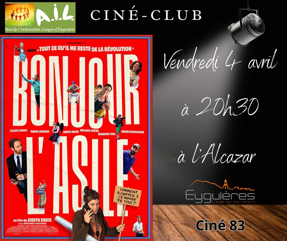 « Tous les Évènements Cet évènement est passé. 4 avril 2025 Ciné Club – A.I.L Eyguières 4 avril 2025 à 20h30 - 23h00 « 4 avril 2025 Vernissage de l’exposition « Alpilles » – Médiathèque d’Eyguières Du 5 au 11 avril 2025 Grand prix des jeunes – Tournoi tennis – La Raquette d’Eyguières » 🎬 [𝗖𝗜𝗡𝗘́ 𝗖𝗟𝗨𝗕 – 𝗔.𝗜.𝗟 𝗘𝗬𝗚𝗨𝗜𝗘̀𝗥𝗘𝗦] 🎬 Bonjour l’asile 📅 Vendredi 4 avril 🕗 à 20h30 📍 au Grenier de l’Alcazar Ajouter au calendrier Google Agenda iCalendar Outlook 365 Outlook Live Détails Date : 4 avril 2025 Heure : 20h30 - 23h00 Catégories d’Évènement: Cinéma, Local Site : https://ail-eyguieres.org/ Organisateur AIL Cinéclub d’Eyguières Voir le site Organisateur Lieu Cinéma Grenier de l’Alcazar Place Thiers EYGUIERES, 13430 + Google Map Téléphone 04.90.59.87.31