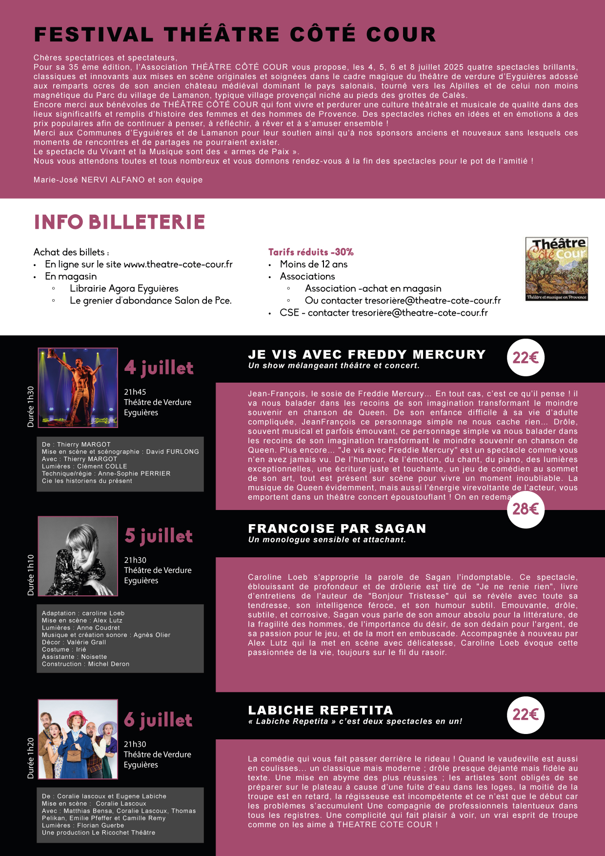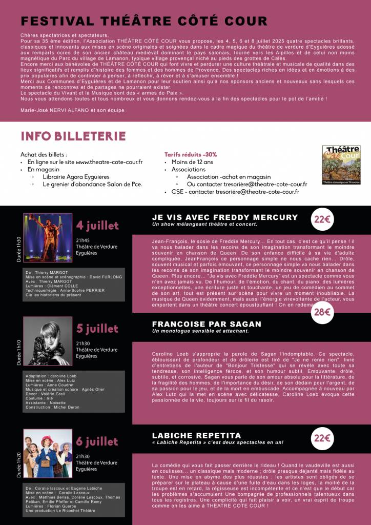 📣 L’association Festival Théâtre Côté-Cour organise depuis 1989 un festival en plein air en Provence et vous donne rdv pour sa 35ème édition à Eyguières et Lamanon.