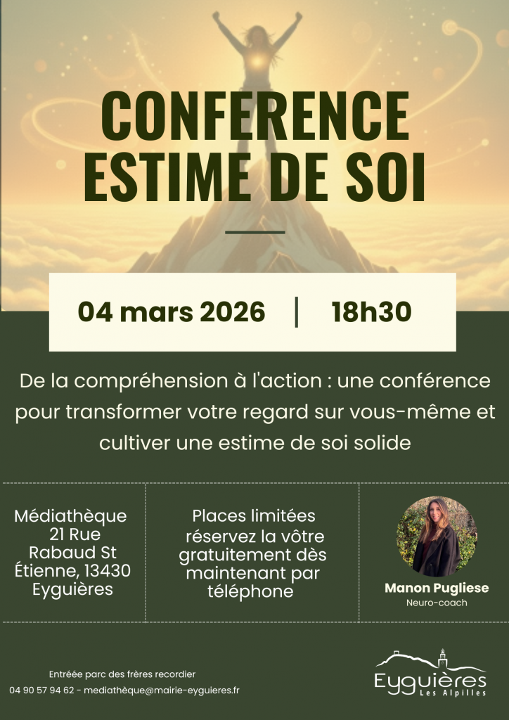 👉 La médiathèque d’Eyguières vous invite à une conférence sur « l’estime de soi », animée par Manon Puglies,, neuro-coach.