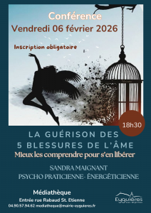 👉 La Médiathèque d’Eyguières vous invite à une conférence sur la guérison des 5 blessures de l’âme, animée par Sandra Maignant.