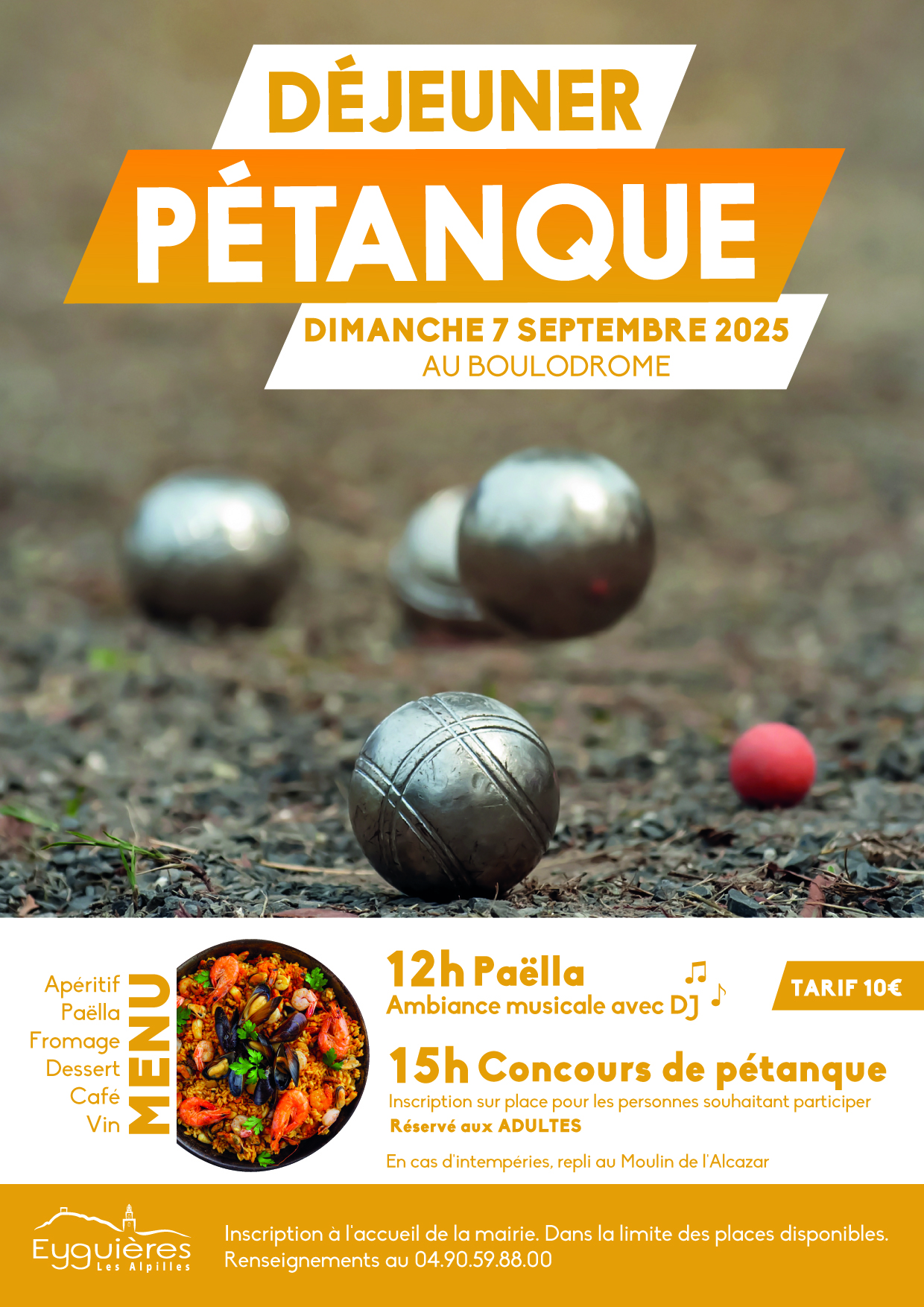 🌧 Pour information, en cas de mauvais temps, le déjeuner paëlla pétanque sera déplacé au 📍 Moulin de l’Alcazar.
