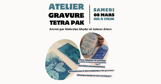 👉 L’Ateliers Agora vous invite à un atelier gravure animé par Mehrake Ghodsi et Solenn Allain, afin d’expérimenter la gravure sur Tetra Pak pour créer une œuvre unique.