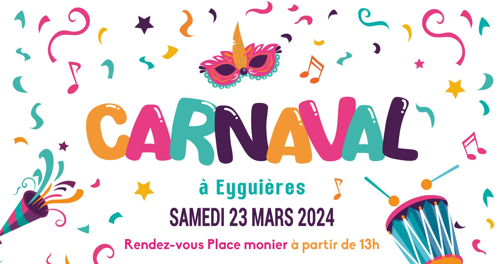 « Tous les Évènements Cet évènement est passé. 23 mars 2024 CARNAVAL 2024 23 Mar 2024 à 13h00 - 20h00 « Du 23 au 24 mars 2024 Salon des Vins et des produits du Terroir 23 mars 2024 Match Handball à domicile » [CARNAVAL] Vous êtes prêts ? Il arrive bientôt ! Rendez-vous pour le Carnaval 2024 d’Eyguières Samedi 23 Mars à partir de 13h Place Monier 𝔸𝕌 ℙℝ𝕆𝔾ℝ𝔸𝕄𝕄𝔼 𝑩𝒐𝒐𝒎 𝑷𝒂𝒓𝒂𝒅𝒆 𝑨𝒏𝒊𝒎𝒂𝒕𝒊𝒐𝒏𝒔 𝒎𝒖𝒔𝒊𝒄𝒂𝒍𝒆𝒔 𝑫𝒊𝒔𝒕𝒓𝒊𝒃𝒖𝒕𝒊𝒐𝒏 𝒅𝒆 𝒄𝒐𝒏𝒇𝒆𝒕𝒕𝒊𝒔 Un goûter sera offert par la municipalité Venez nombreux et surtout amusez vous ! On a hâte de vous voir avec vos plus beaux déguisements Ajouter au calendrier Google Agenda iCalendar Outlook 365 Outlook Live Détails Date : 23 Mar 2024 Heure : 13h00 - 20h00 Catégories d’Évènement: Évènements de la commune, Local Lieu Place Monier Place Monier Eyguieres, 13430 France