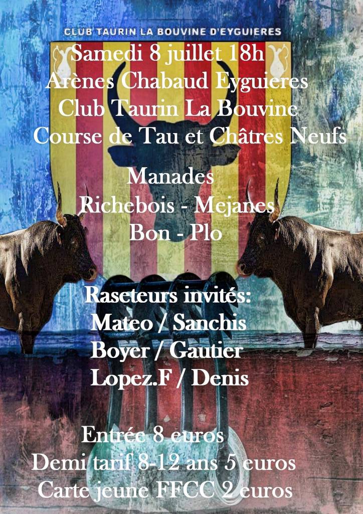 Pour la première manifestation du mois de juillet, Le Club Taurin La Bouvine vous invite pour la course de tau et châtres neufs !