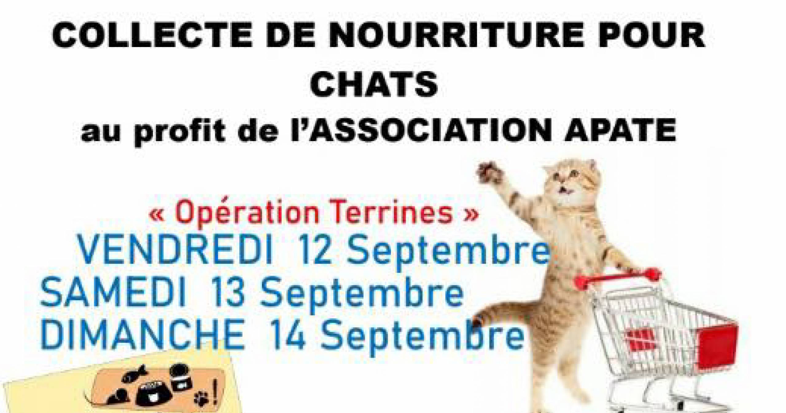 📣 L’association A.P.A.T.E organise sa collecte de rentrée « Opération terrines » au profit de nos amis à quatre pattes 🐱 à 📍 l’𝗜𝗡𝗧𝗘𝗥𝗠𝗔𝗥𝗖𝗛𝗘́ 𝗗’𝗘𝗬𝗚𝗨𝗜𝗘𝗥𝗘𝗦.