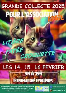 📣 L’association A.P.A.T.E organise sa grande collecte 2025 au profit des animaux placés sous sa protection.