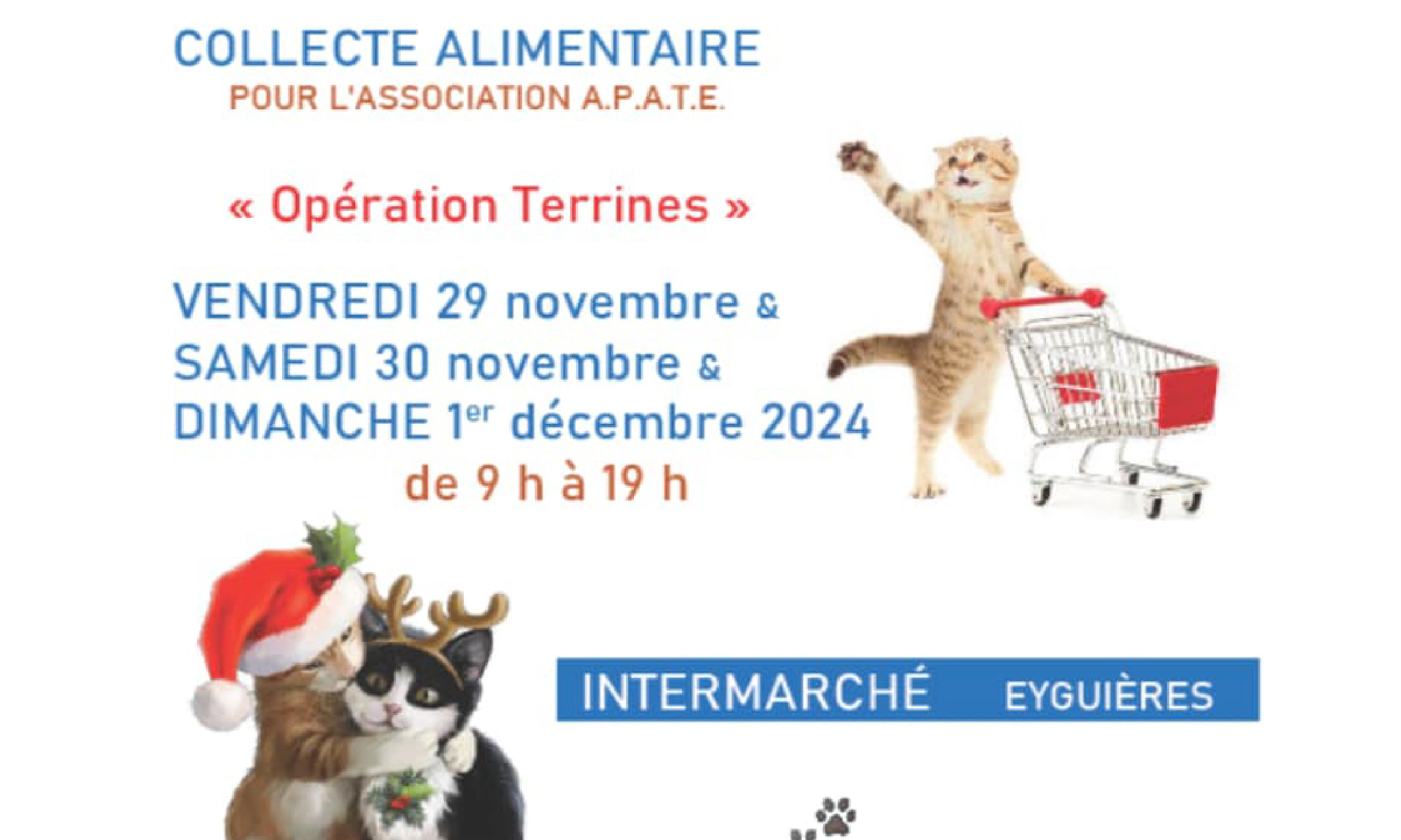📣 L’association A.P.A.T.E organise sa collecte « Opération Terrine » au profit des animaux placés sous sa protection.