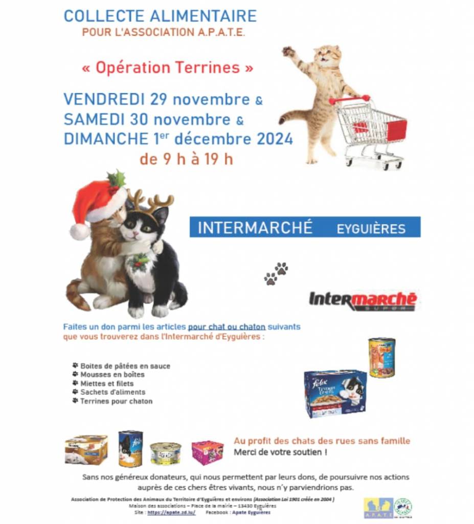 📣 L’association A.P.A.T.E organise sa collecte « Opération Terrine » au profit des animaux placés sous sa protection.