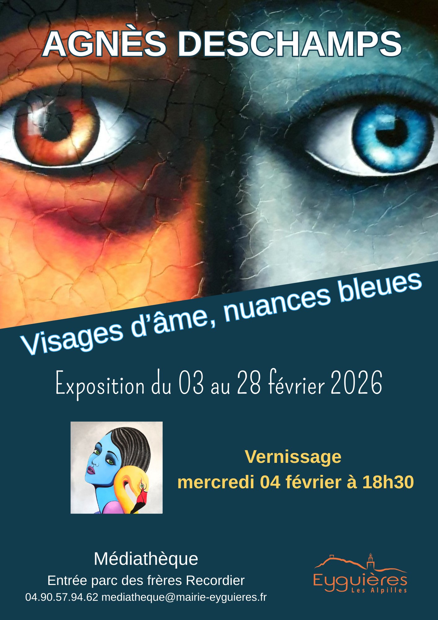 La médiathèque d’Eyguières accueille l’artiste peintre Agnès Deschamps pour une exposition « Visages d’âme, nuances bleues ».
