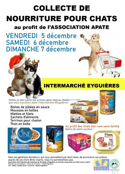 📣 L’association A.P.A.T.E organise une collecte de Noël au profit de nos amis à quatre pattes 🐱 à 📍 l’𝗜𝗡𝗧𝗘𝗥𝗠𝗔𝗥𝗖𝗛𝗘́ 𝗗’𝗘𝗬𝗚𝗨𝗜𝗘𝗥𝗘𝗦.
