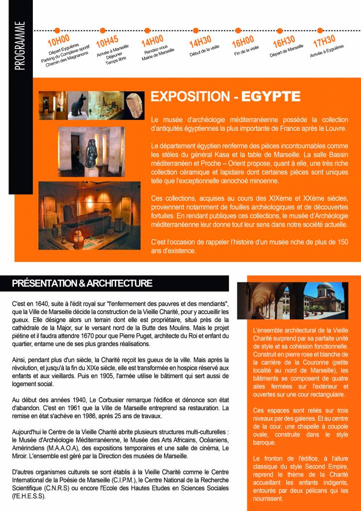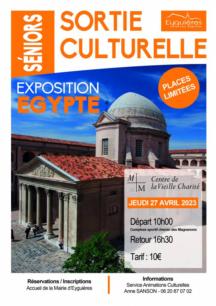 Une sortie culturelle est organisée par la municipalité pour nos séniors au Centre de la Vieille Charité pour voir une exposition sur le thème de l’Egypte :