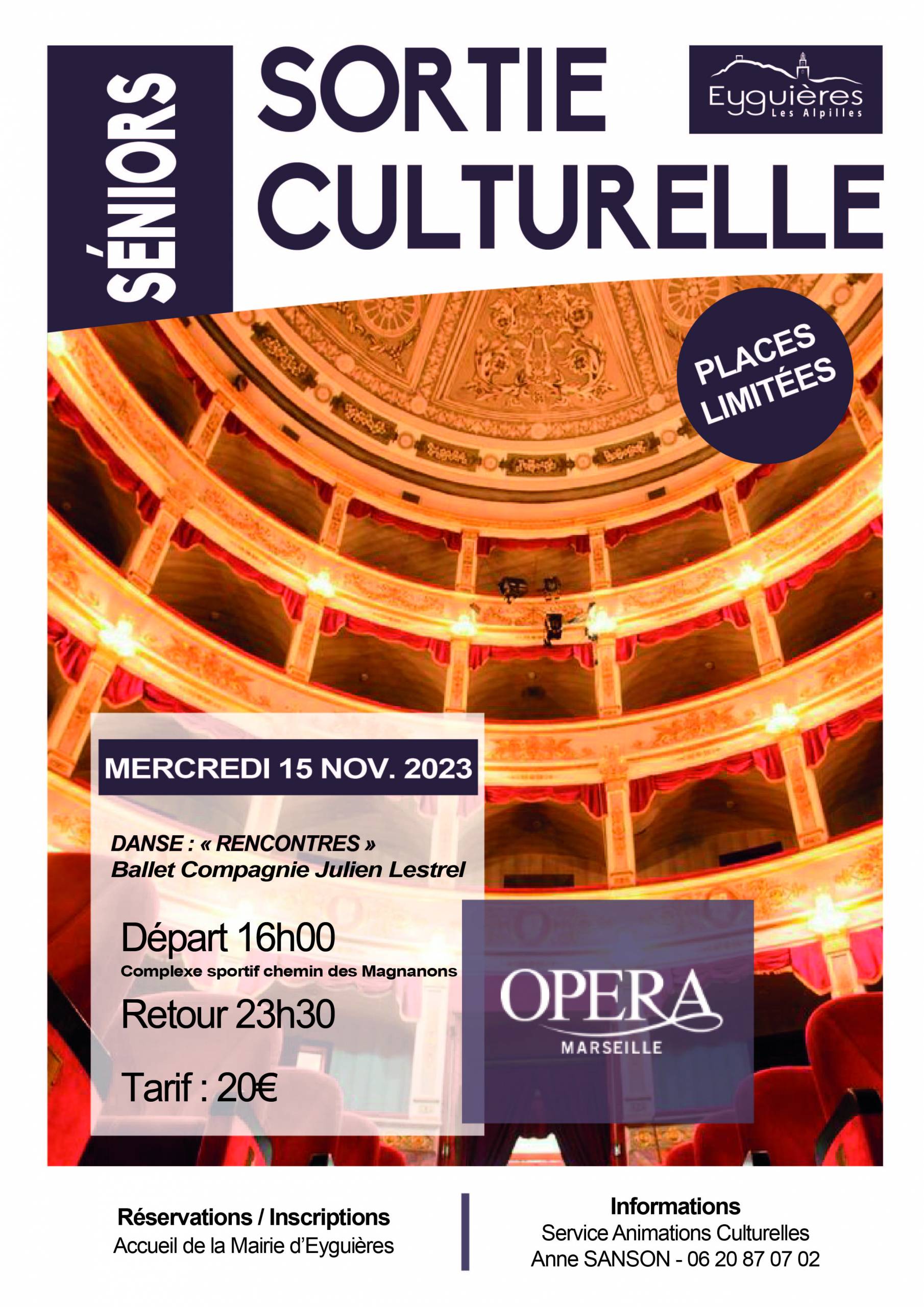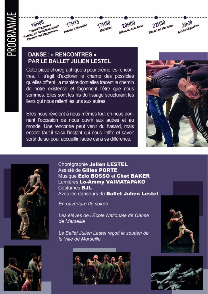 Une sortie culturelle est organisée par la municipalité pour nos séniors à l’Opéra de Marseille, pour découvrir un ballet, compagnie Julien Lestrel intitulé » Rencontres »