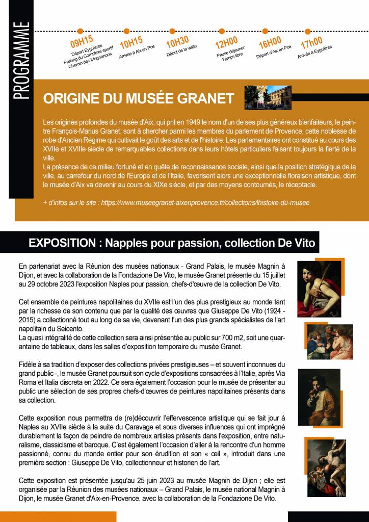 Une sortie culturelle est organisée par la municipalité pour nos séniors au Musée Granet à Aix en Provence, pour découvrir l’exposition Napples pour Passion, Collection de Vito.