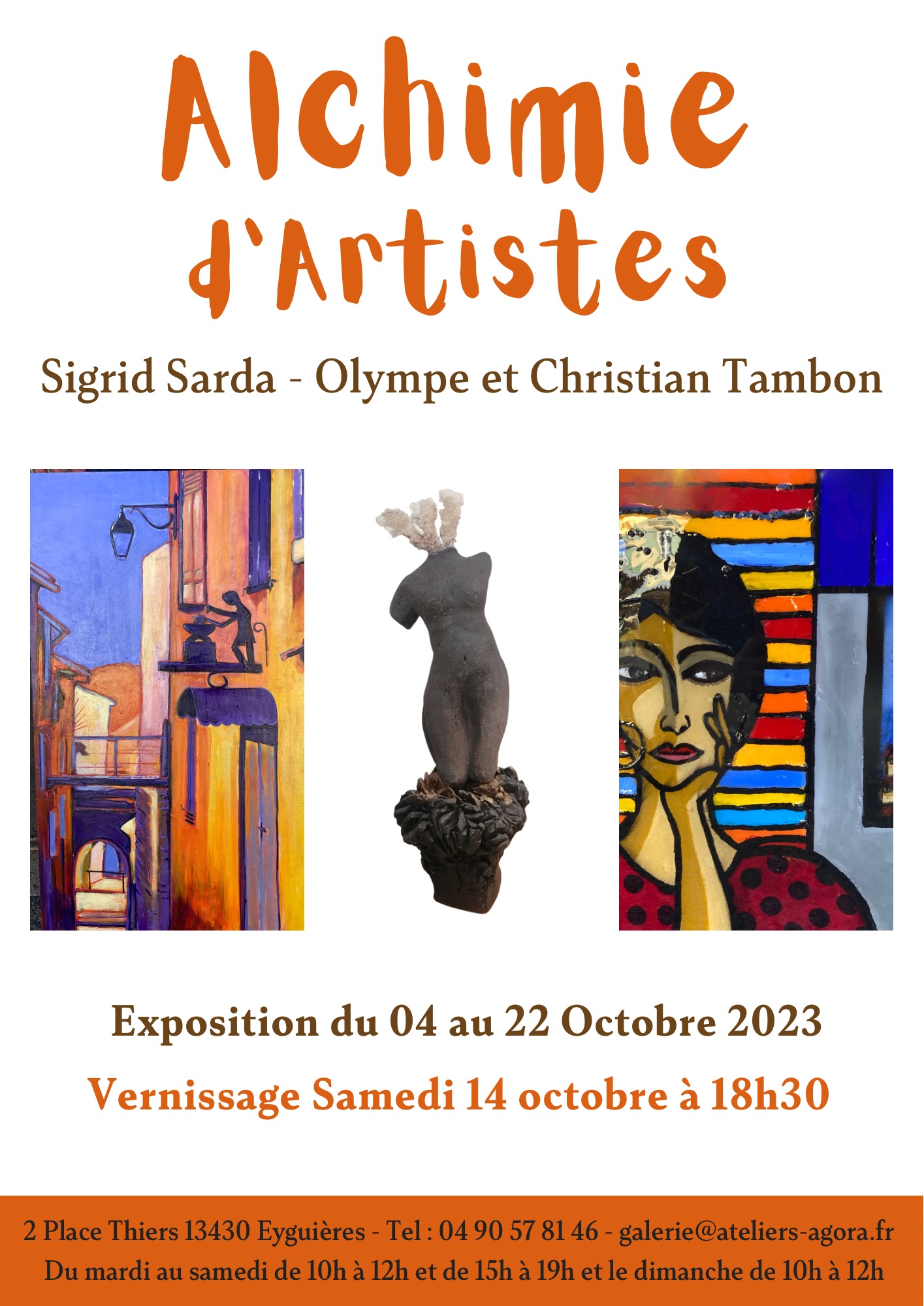 Les Ateliers Agora vous invitent à découvrir les alchimies artistiques de : Sigrid Sarda, Olympe et Christian Tambon.