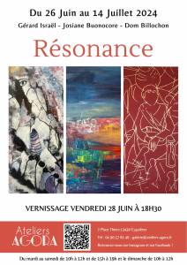 🖼️ L’exposition « Résonnance », réunie trois univers aux caractères métaphysiques et spirituels qui appellent à l’ouverture des esprits. Ici les inspirations et les perceptions se veulent empruntes de foi, d’espérance et de la musique des cœurs.