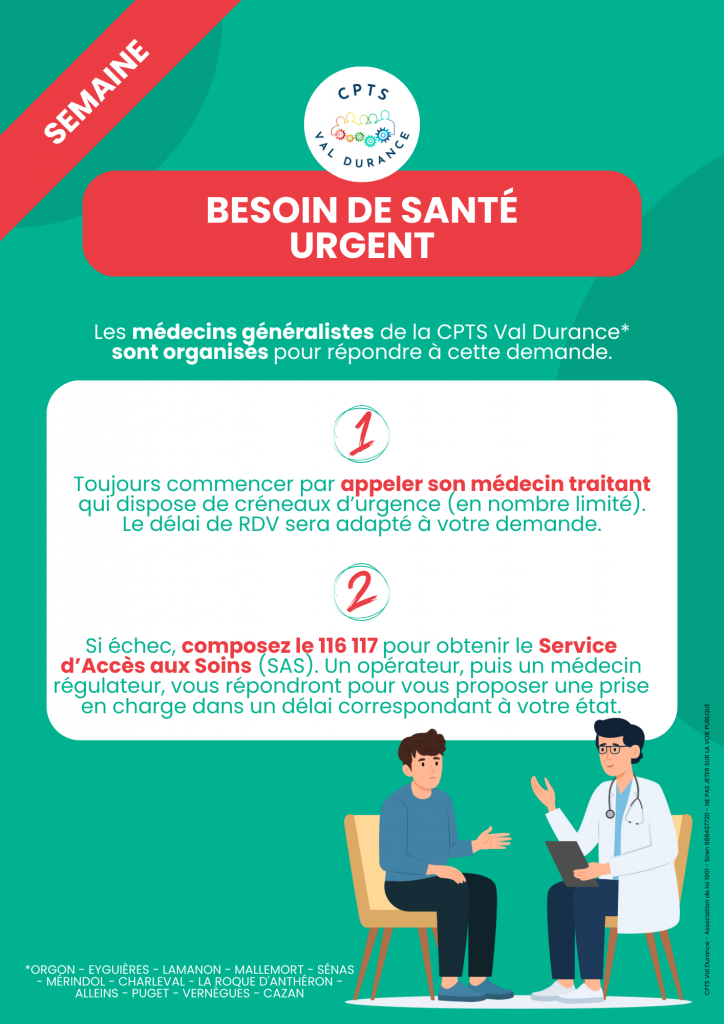 📍 La CPTS Val Durance propose une organisation médicale adaptée pour les urgences non vitales, que ce soit en semaine, le week-end ou les jours fériés.