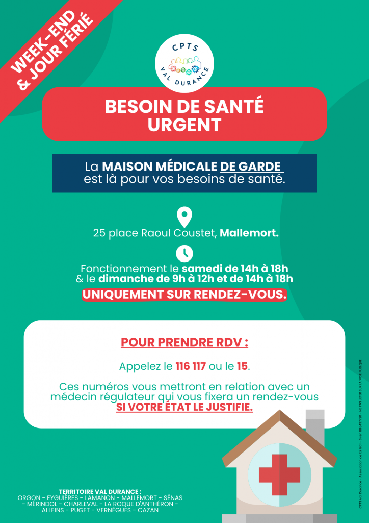 La Maison Médicale de Garde de Mallemort vous accueille uniquement sur rendez-vous :