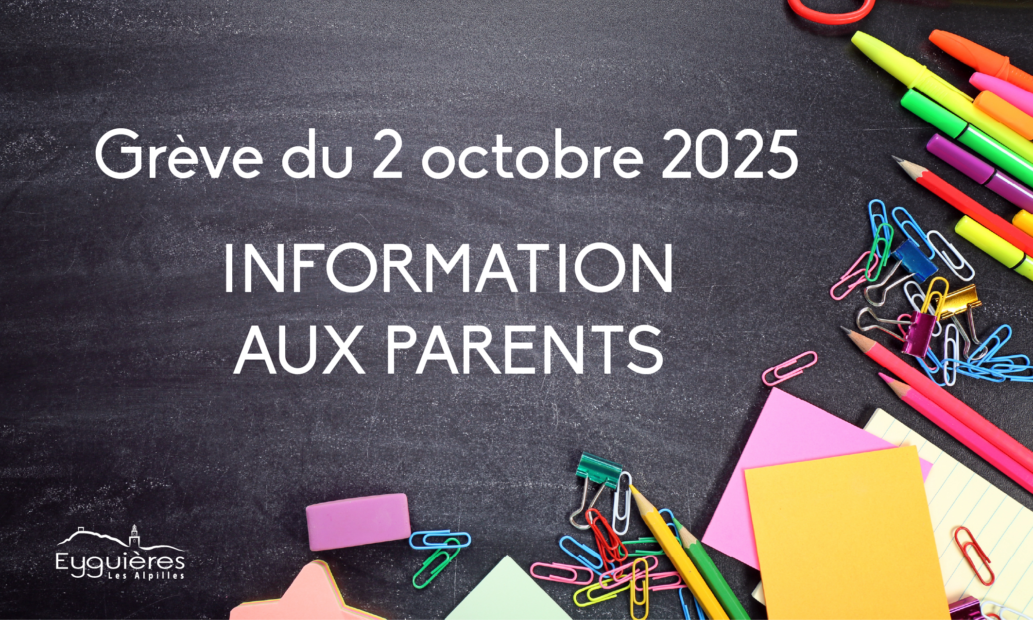 Conformément à la législation en vigueur, la commune d’Eyguières assurera un service minimum d’accueil des élèves de l’école 𝗚𝗮𝗯𝗿𝗶𝗲𝗹 𝗣𝗲́𝗿𝗶 le jeudi 2 octobre 2025, aux horaires habituels de classe.