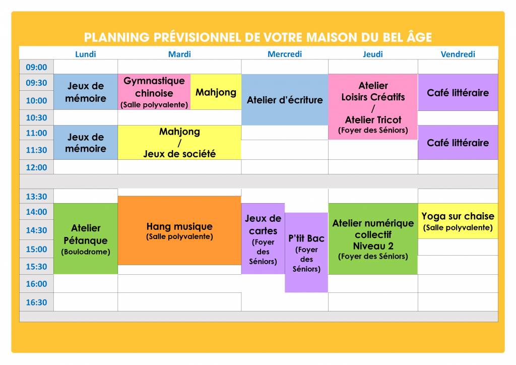 👉 Retrouvez en image le planning prévisionnel des activités proposées à la maison du bel âge.
