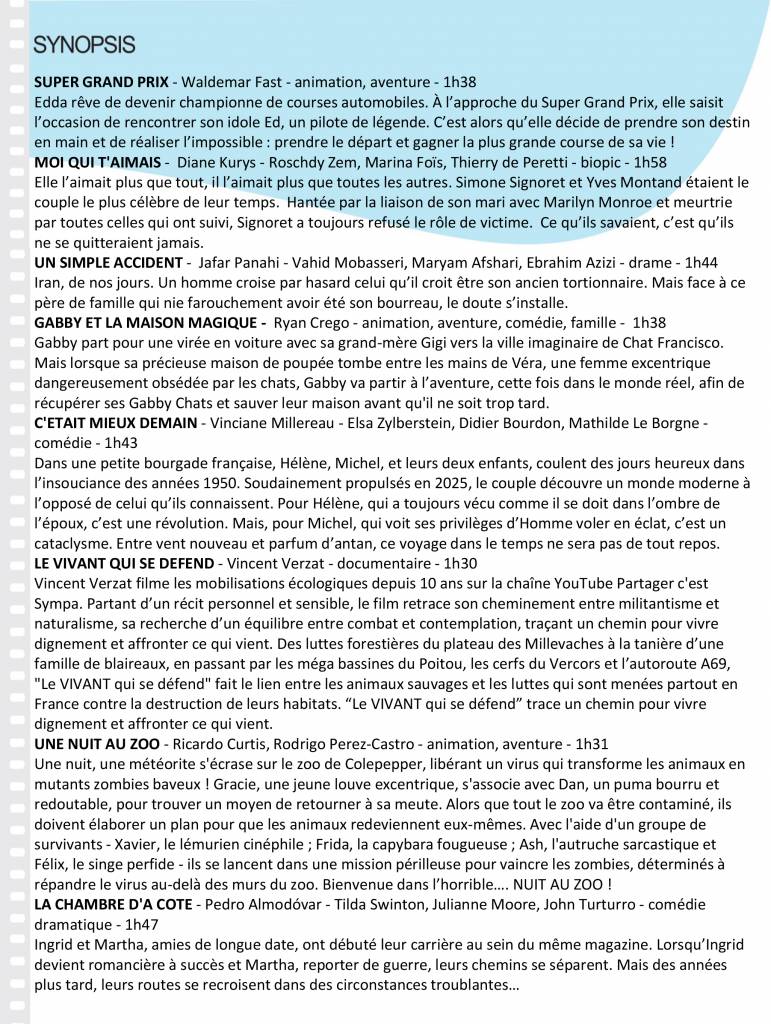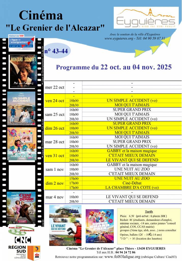 Programme cinéma séances du 22 octobre au 4 novembre 2025