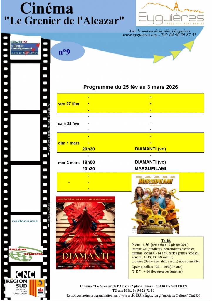 Programme cinéma séances du 25 février au 3 mars 2026