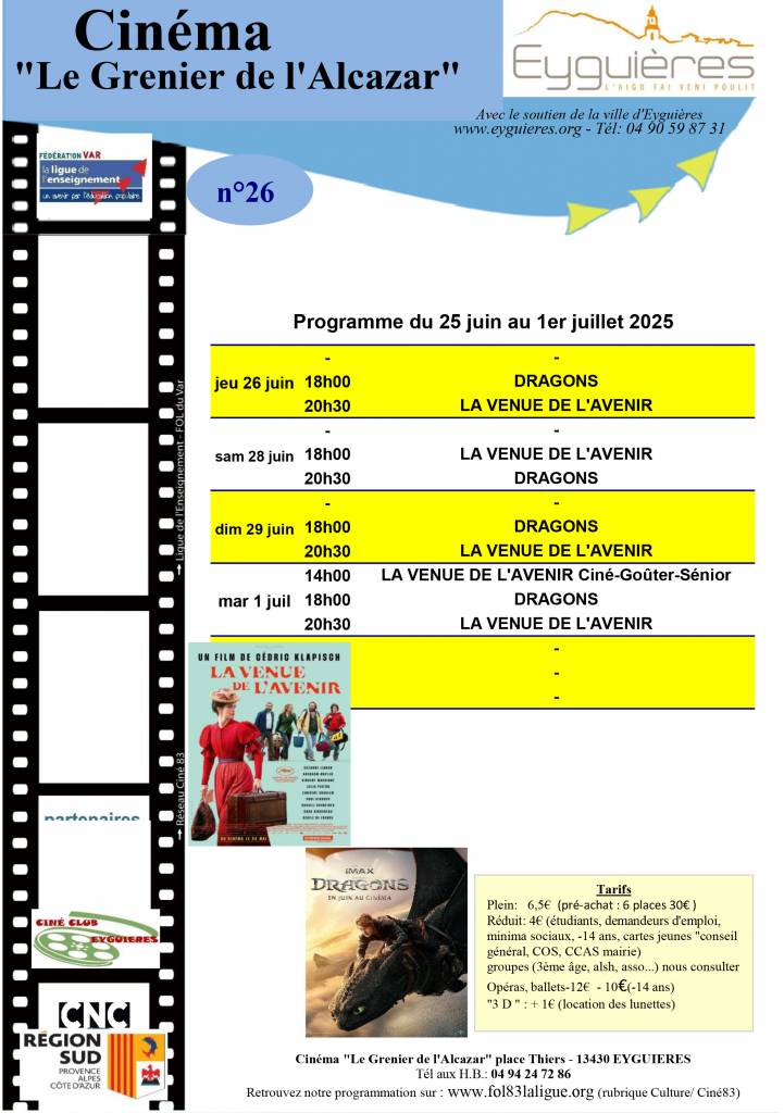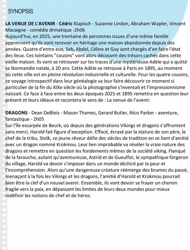 Programme cinéma séances du 25 juin au 1er juillet 2025