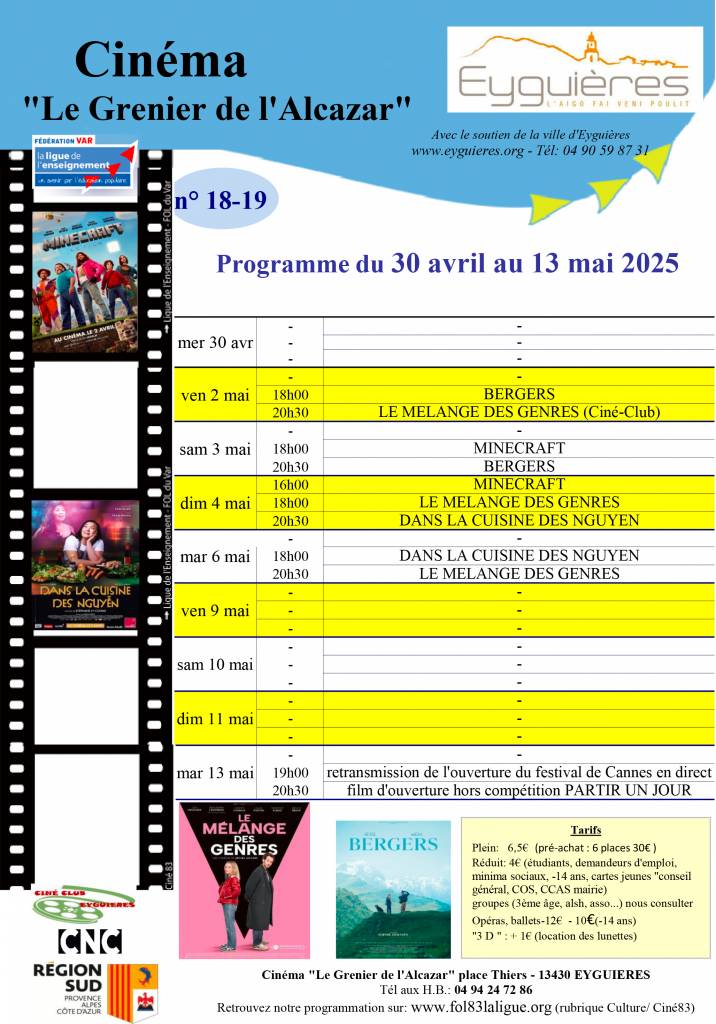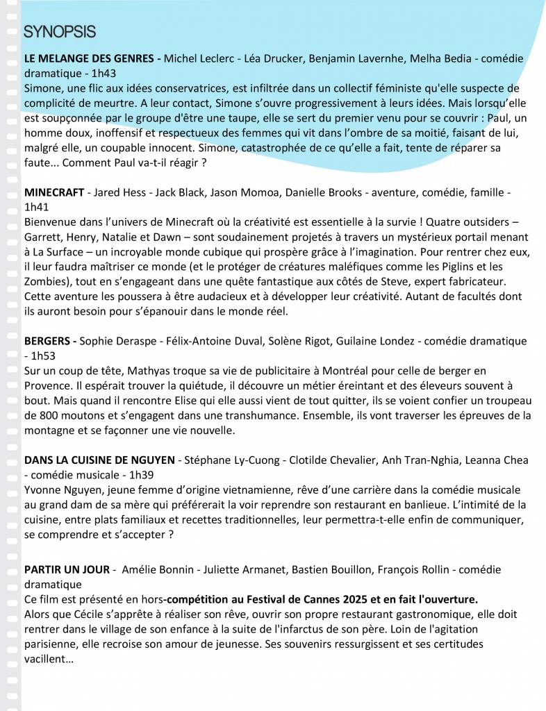 Programme cinéma séances du 30 avril au 13 mai 2025