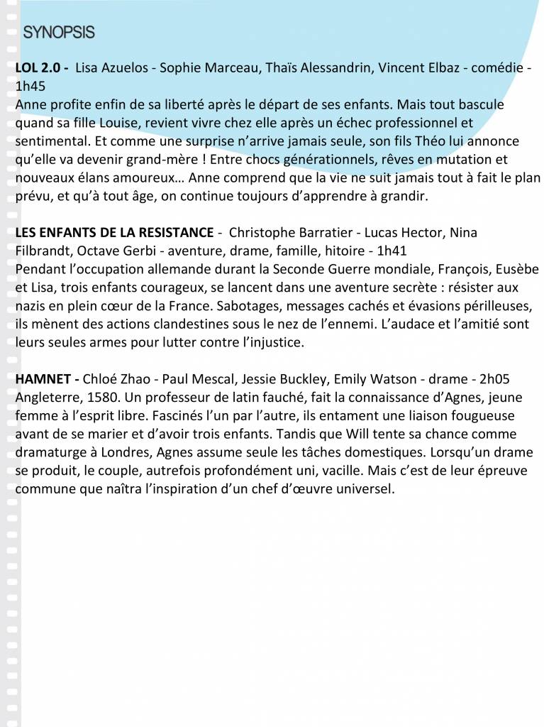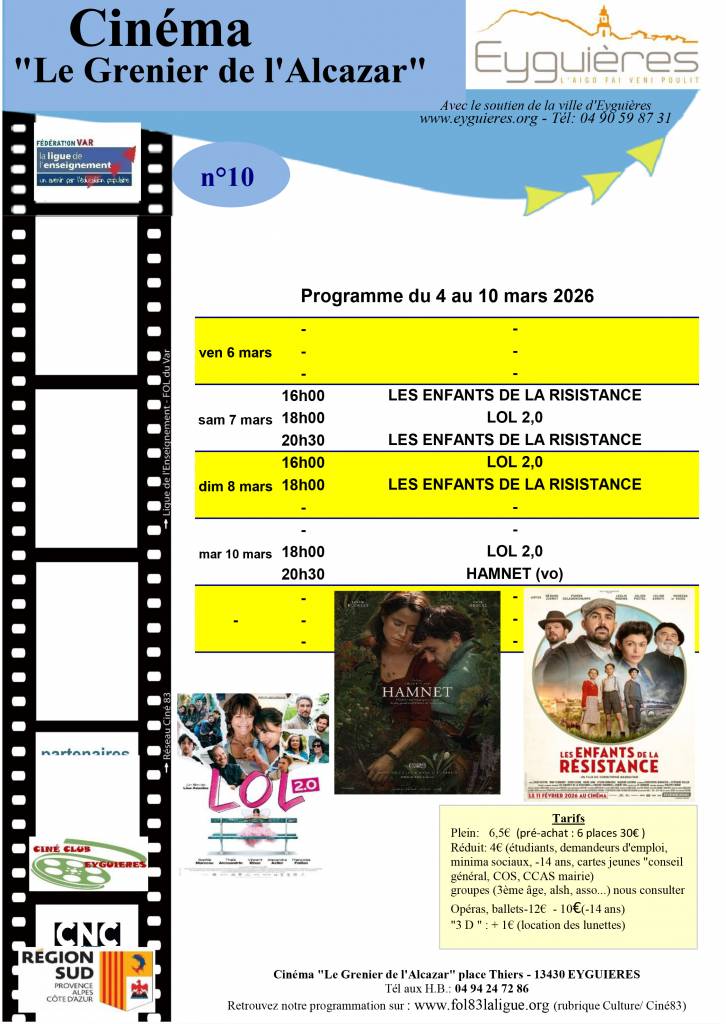 Programme cinéma séances du 4 au 10 mars 2026