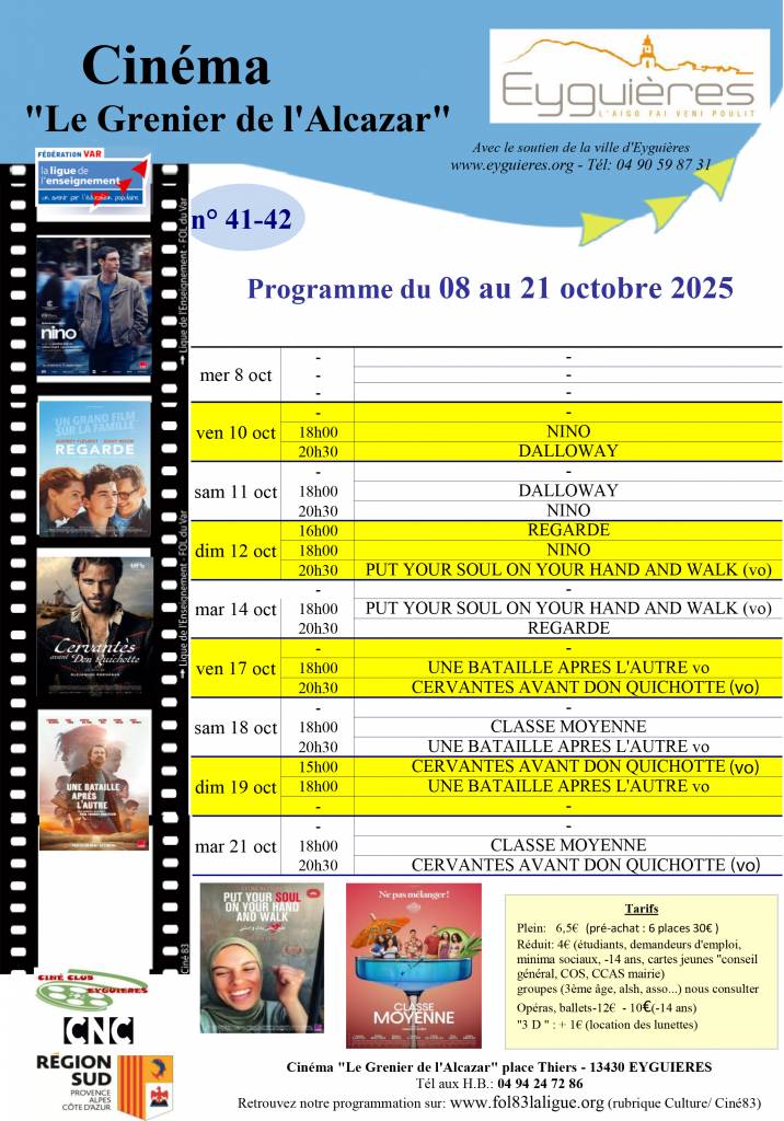 Programme cinéma séances du 8 au 21 octobre 2025