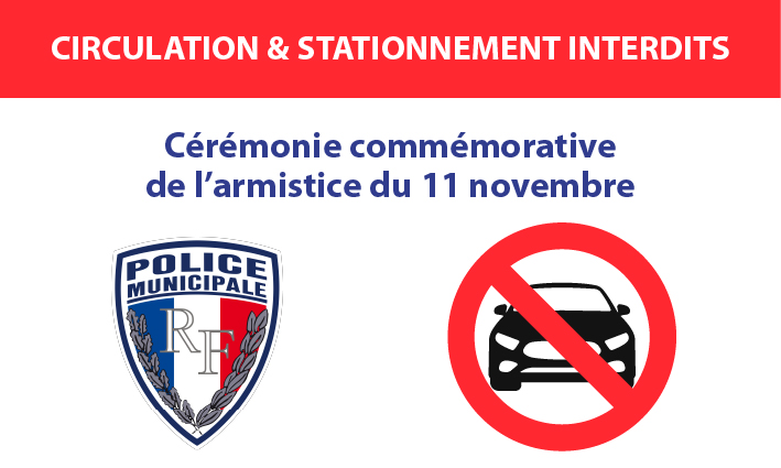 📣 Nous vous informons qu’en raison de la cérémonie commémorative de l’armistice, il sera interdit de circuler et de stationner comme indiqué ci-dessous :
